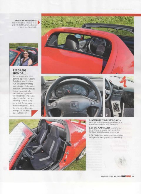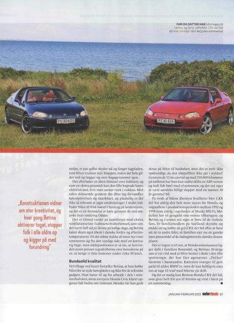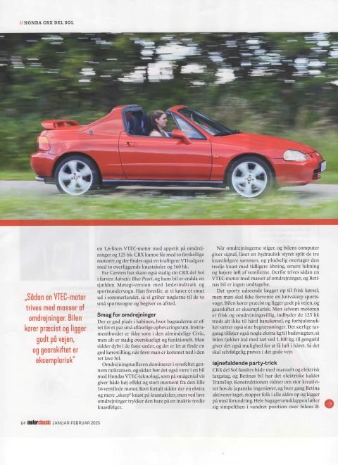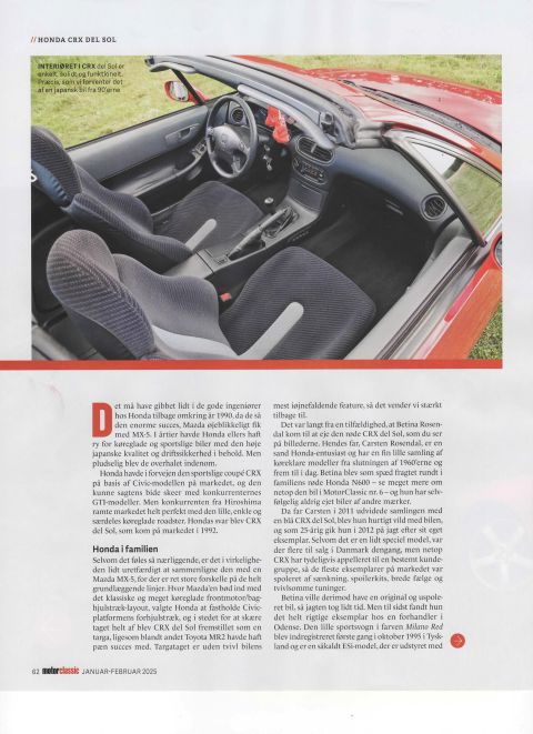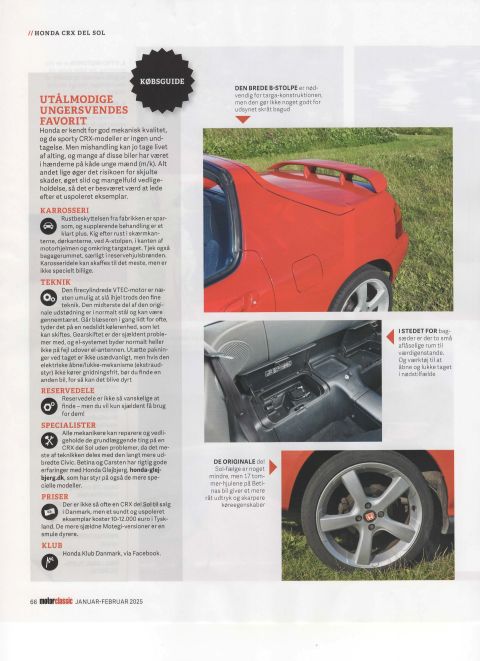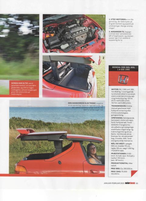 11-7-2024 3 billeder taget af FDM, til en artikel i FDM motor Classic om den røde CRX Del Sol. 14-12-2024 Jeg har fået tilladelse til at vise ovenstående 8 sider fra FDM Motor Classic nr. 95, januar-februar 2025, med CRX
